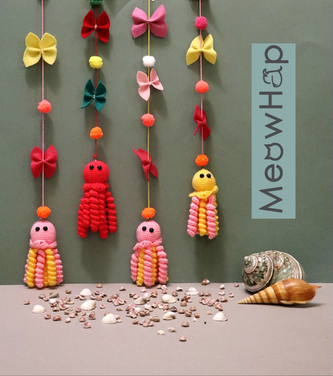 این هشت پا از نخ کاموایی بافته شده و پاهای ان حالت فنری و جذاب دارد