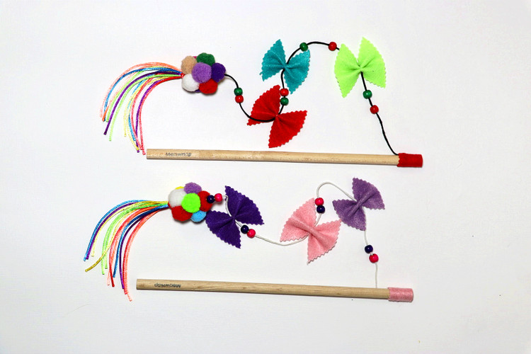 اسباب بازی گربه چوب عروسکدار توپی پوم پومی منگوله دار